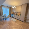Acest apartament nou, cu două camere, este situat la etajul șase în cartierul Dâmbul Rotund. Blocul recent construit beneficiază de două lifturi moderne pentru acces facil. Locuința are o suprafață utilă de 47 mp, completată de un balcon generos. Compartimentarea eficientă include un living luminos cu bucătărie open space, dormitor, baie și hol.