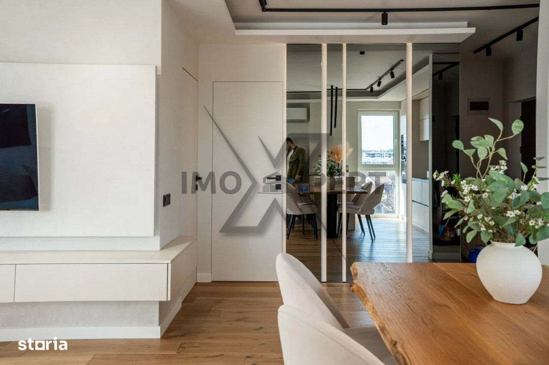 Apartamentul a fost amenajat exclusiv cu finisaje premium, în colaborare cu un designer de interior, și se predă complet mobilat și utilat, pregătit pentru a fi locuit. Toate finisajele și dotările au fost alese pentru a beneficia de durabilitate și confort maxim, asigurând un spațiu elegant, funcțional și de lungă durată.