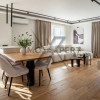 Pe timp de zi, apartamentul beneficiază de lumină naturală generoasă, care evidențiază finisajele și proporțiile, creând o atmosferă aerisită și primitoare. Seara, luminile ambientale transformă spațiul într-un cadru intim și elegant, ideal pentru relaxare și socializare.