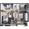 - Compartimentare eficientă: Living open space cu bucătărie, două dormitoare, doua baie și balcon, oferind un spațiu aerisit și modern.