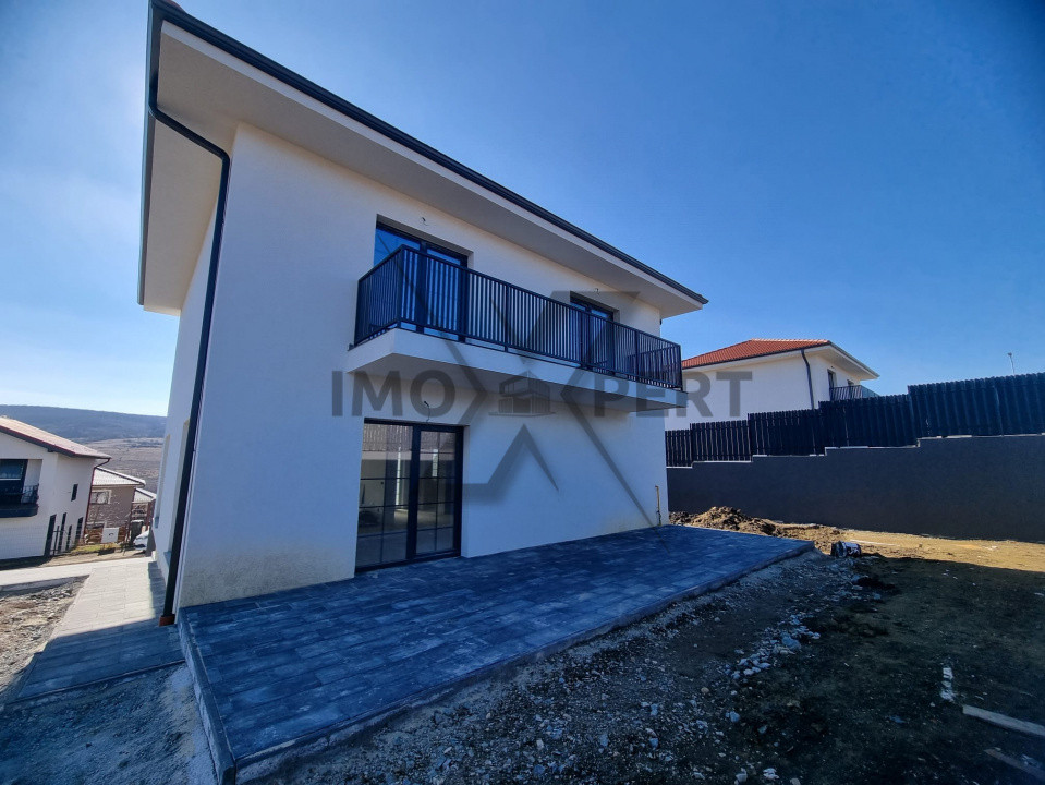 Va propun spre vânzare o casă situată în Chinteni zona magazinului Profi, având o suprafață utilă de 120 mp și un teren de 500 mp. Casa este dispusă pe 2 niveluri, oferind o compartimentare practică și eficientă. La parter se află un living spațios, o bucătărie open space, o baie de serviciu, si o camera tehnica. La etaj sunt situate trei dormitoare confortabile, o baie in dormitorul matrimoniala, plus o baie ce deserveste celelalte 2 dormitoare si 1 balcon ce oferă o vedere panoramică asupra împrejurimilor. Casa se preda la stadiul de finisat exterior si semifinisat interior, cu incalzire in pardoseala, centrala termica proprie, geamuri termopan cu 3 randuri de sticla si toate instalatiile trase pe pozitie. Casa este racordata la apa, canalizare si gaz. In pret este inclus TVA-ul.