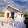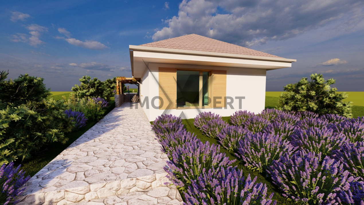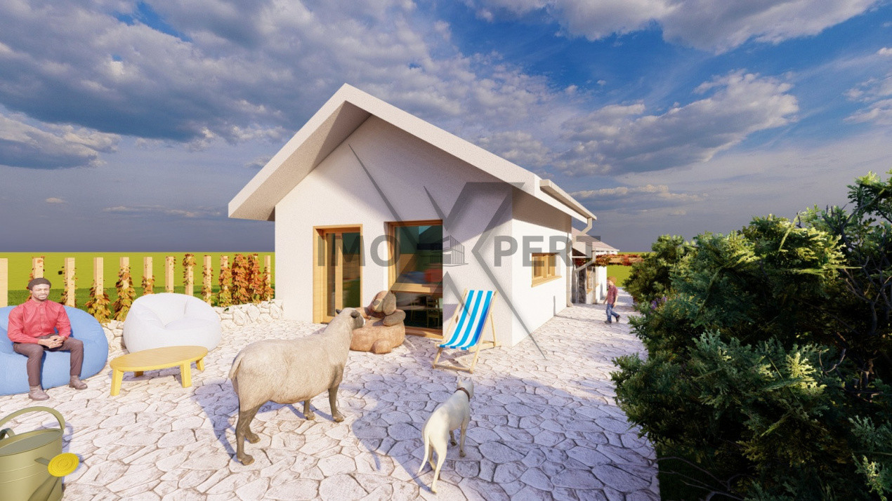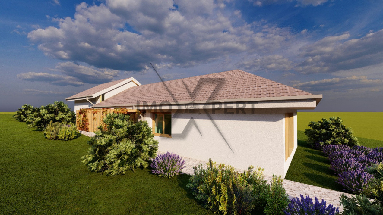 Compartimentarea este practică și modernă: living luminos cu bucătărie open space, trei dormitoare bine dimensionate și două băi. Spațiile sunt gândite pentru o familie care își dorește funcționalitate și intimitate. Curtea permite amenajări suplimentare, iar în fața casei sunt disponibile două locuri de parcare, cu posibilitatea de a construi un garaj.